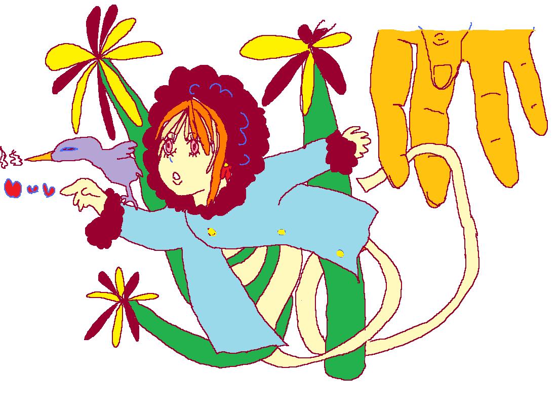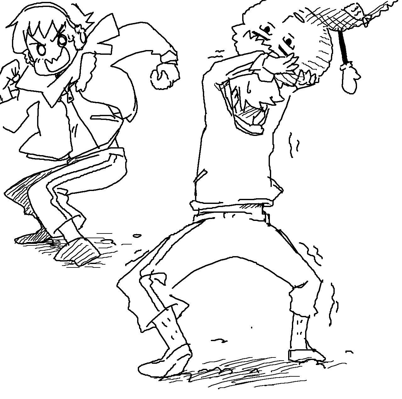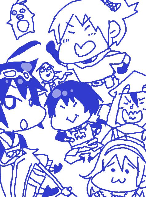 上は年賀状イラ。線画が鉛筆のまま(^p^)